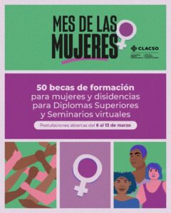 En el #MesDeLasMujeres, CLACSO dará 50 becas para mujeres y disidencias en Diplomas Superiores y Seminarios virtuales. Postulaciones abiertas hasta el jueves 13/03. La convocatoria está destinada a: Estudiantes de posgrado de maestría y doctorado con proyecto de tesis en las áreas relacionadas a estudios feministas, de género y disidencias preferentemente vinculadxs a un centro […]