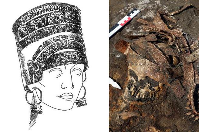 El equipo halló que el túmulo funerario contenía 30 puntas de flecha de hierro y que una de las guerreras, la más mayor, se llevó a la tumba una corona de oro y una daga.