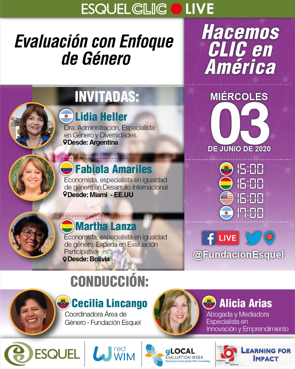 Esta es una iniciativa de: Fundación Esquel – Red de Mujeres LAC en Gestión de Organizaciones / RedWim – #gLOCALEvaluationWeek – Learning for Impact, Corp. (L4I) / Aprendizaje para el Impacto.
