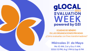 La Semana de la Evaluación gLOCAL es un evento único de intercambio de conocimiento que conecta a la comunidad de evaluación global de los diversos sectores y regiones del mundo. Durante una semana, participantes de todo el mundo se unen a eventos, tanto en su región como en otras latitudes, para aprender en conjunto sobre una gran cantidad de temas y experiencias.